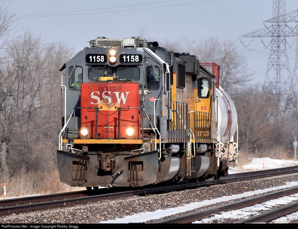 After setting out a unit and wying at Global 4, Patched Cotton Belt 1158 (formerly 1943) leads the local back south at Arsenal Rd north of Elwood.