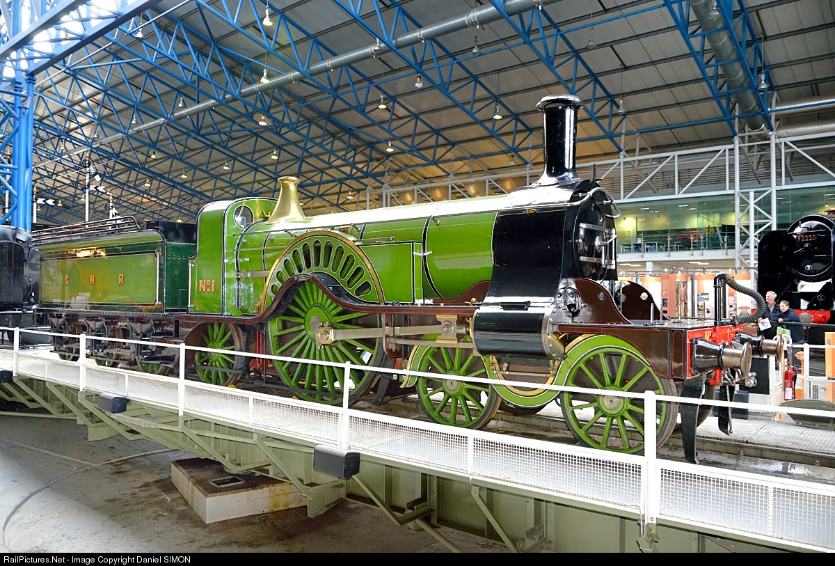 | The Great Northern Railway steam locomotive No 1 seen here on the turntable of the NRM in York has been designed by Patrick Stirling and has been built at Doncaster in 1870. The locomotive has been withdrawn from active service in 1907. |