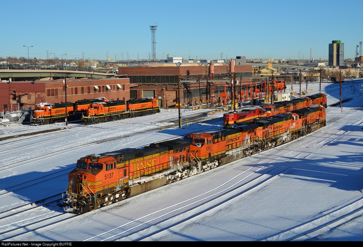 Having brought a freight to Denver in last night's snow storm, a quartet of frosty pumpkins wait in the BNSF engine servicing yard for a new assignment.