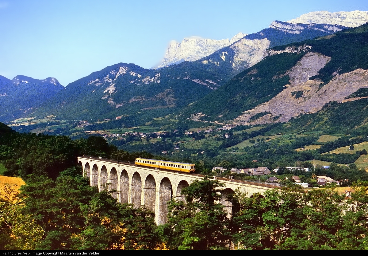 A SNCF RGP (Rame à Grandes Parcours) on the Viaduc de Font Jailly. The RGP is riding train 8569 from Lyon-Perrache to Veynes-Devoluy.