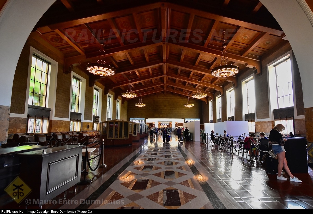 Main Concourse at Los Angeles Union Station - LAUS, principal railway station owned by LAMTA - Los Angeles Metropolitan Transportation Authority and operated by Amtrak and Metrolink. Built in 1939, Los Angeles Union Station is the largest railroad passenger terminal in the Western United States and is widely regarded as “the last of the great train stations.” The station’s signature Mission Moderne style makes it one of L.A.’s architectural gems. The station was commissioned in 1933 as a joint venture between the Southern Pacific, Union Pacific and Atchison, Topeka, and Santa Fe railroads and was intended to consolidate the three local railroad terminals (Source www.unionstationla.com).