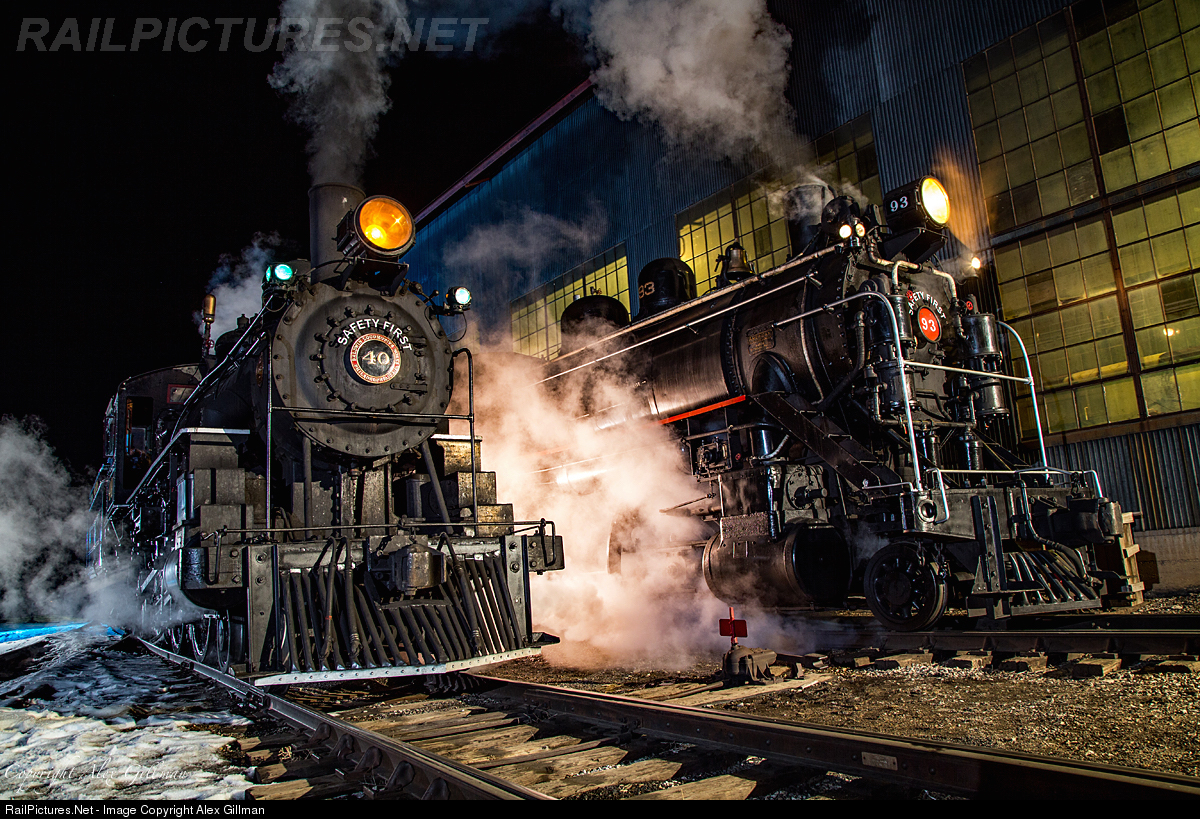 It's a suspiciously warm evening in Ely Nevada as engines 40 and 93 pose for the first weekend of the Winter Steam Spectacular's night photo session.