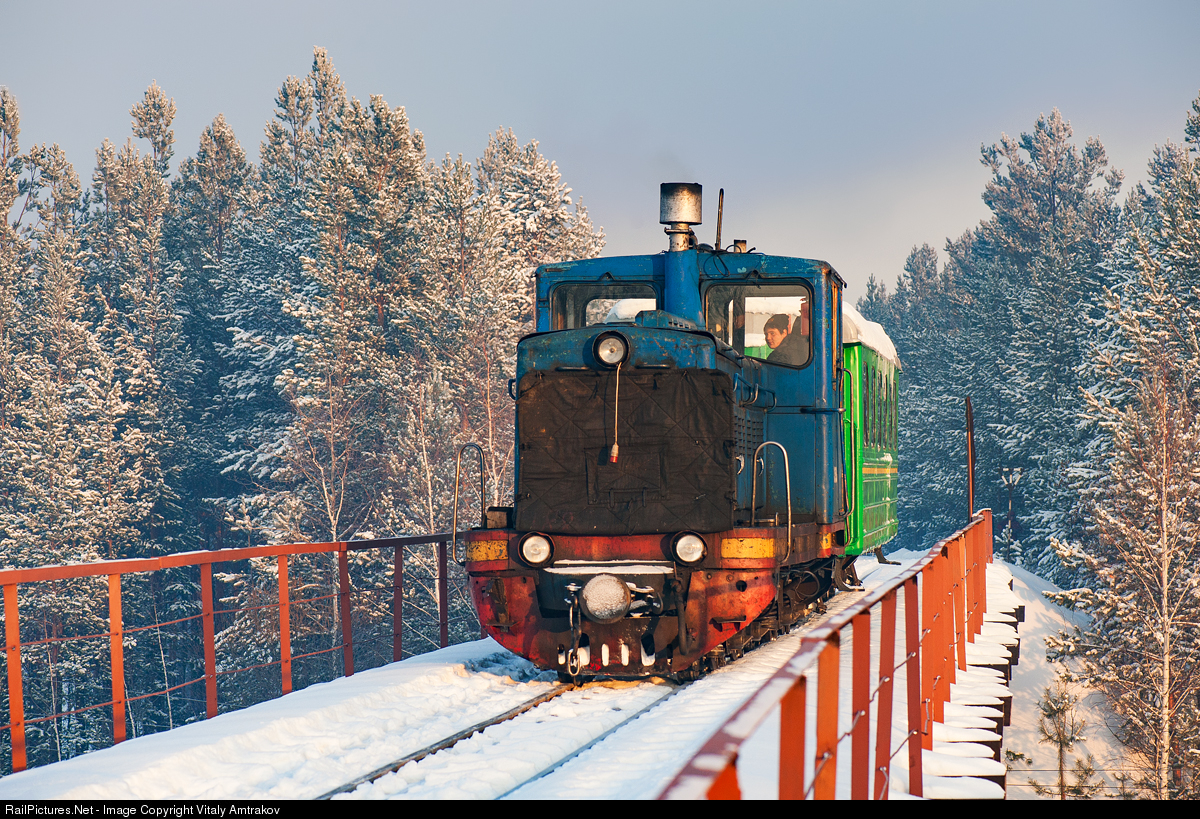 TU4 narrow gauge diesel engine leading local train from Elnichnaya to Ugolnaya