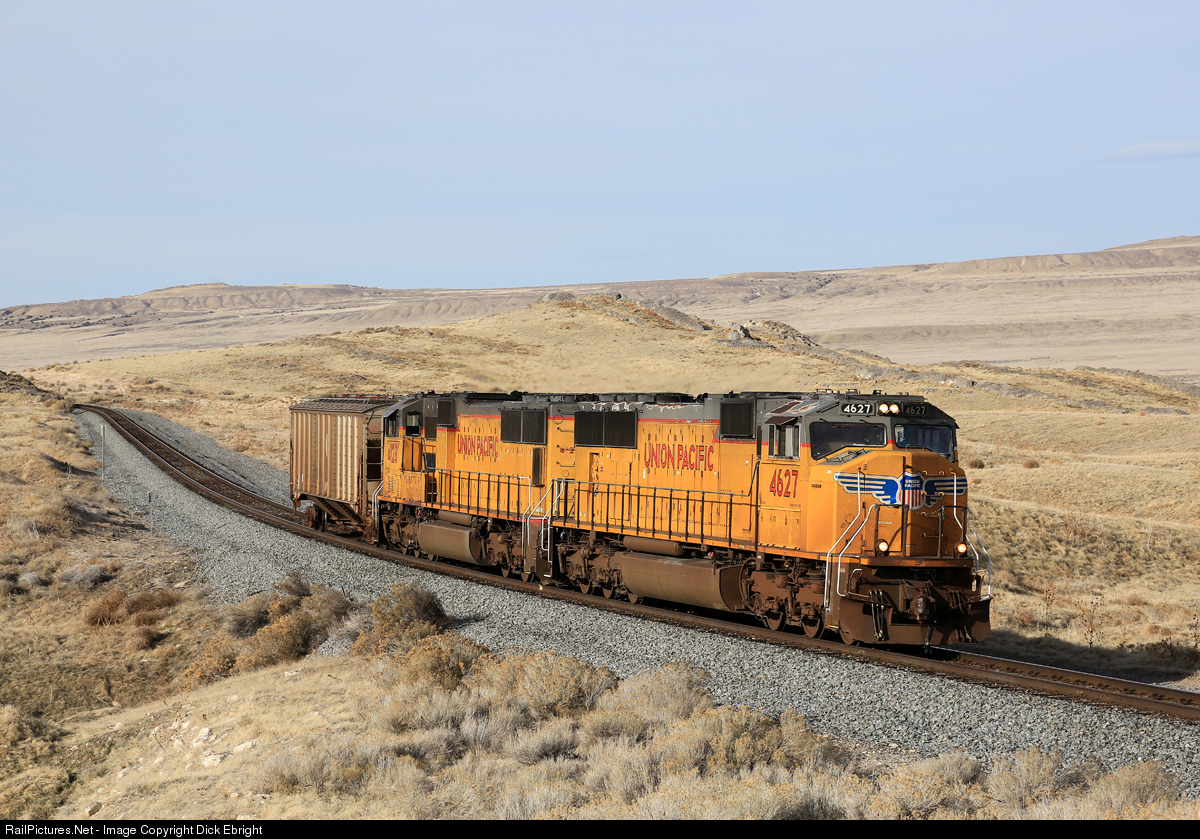 I was driving east across the Bonneville Salt Flats on I80 in Utah on my way home from Silver Zone Pass when I overtook UP’s Wendover Local at Clive. I took the Clive exit, but just as I got to the tracks, the Local took off east and I did not get a shot. So, back on I80 eastbound and got off again at the Lakeside exit, found a good spot and waited. After 20 minutes or so, here comes the UP 4627 climbing Low Hill with just one car. I heard that business on the UP was slow, but only one car!