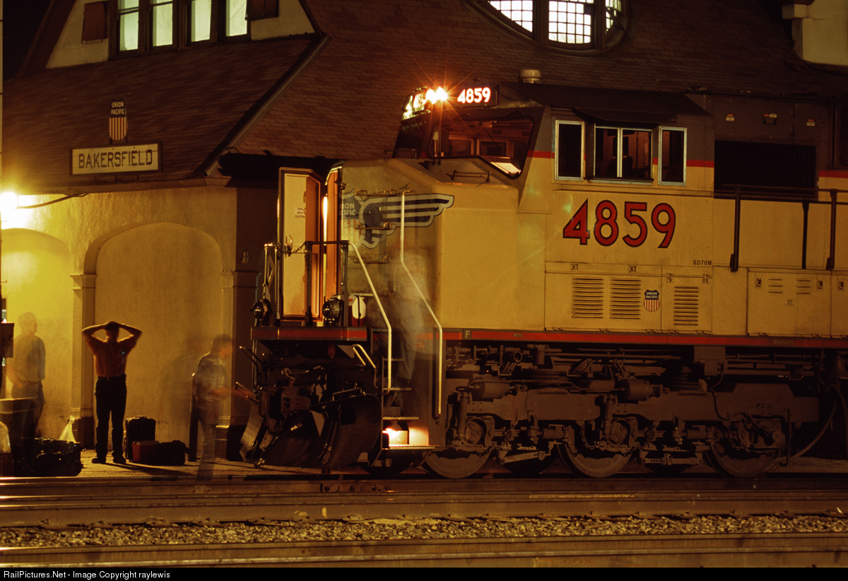 On 5 May 2004, UP 4859 is in charge of the IOALBR-4. In this scene the Southbound train has made a short pause at Bakersfield, CA at the UP yard for a crew change.
