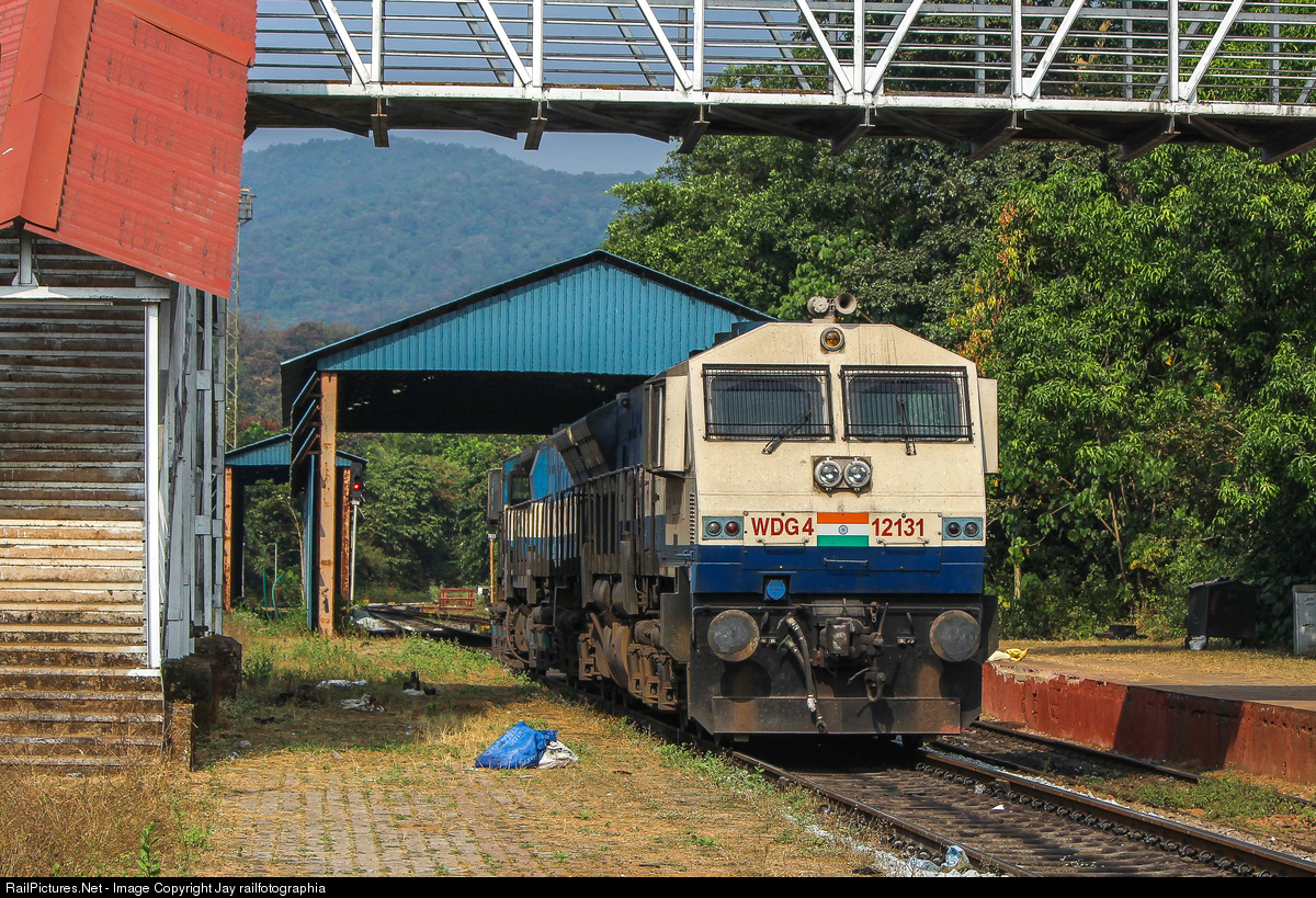HUBBALI WDG-4 pair, helper (banker) locos for Goa Express waiting for sand to be filled in the sand box before moving to the siding