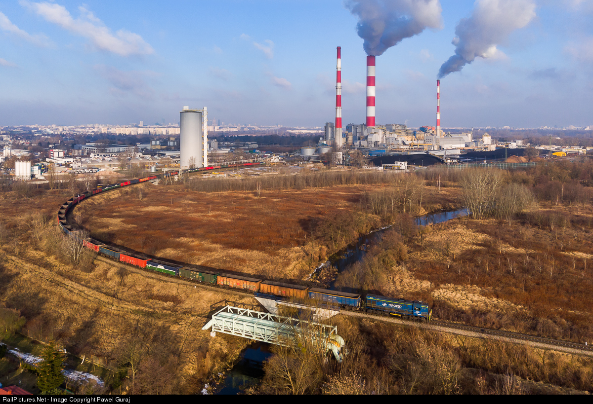 SM48 with 40 empty coal cars is leaving Siekierki power plant in its way to Jeziorna