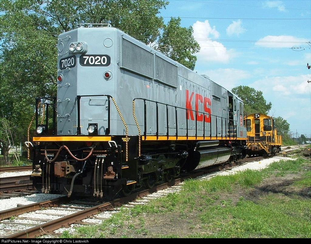 | The first ever photo of rebuilt and freshly painted KCS SD50 7020. When I arrived on the property, they were still painting it. They even went through all the trouble of pulling it out of the shops with their shop switcher so I could shoot it. |