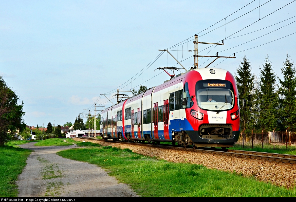 | EN97-007 as a train WKD139 form Warszawa Śródmieście WKD to Grodzisk Mazowiecki Radońska is approaching to the stop Grodzisk Mazowiecki Jordanowice.