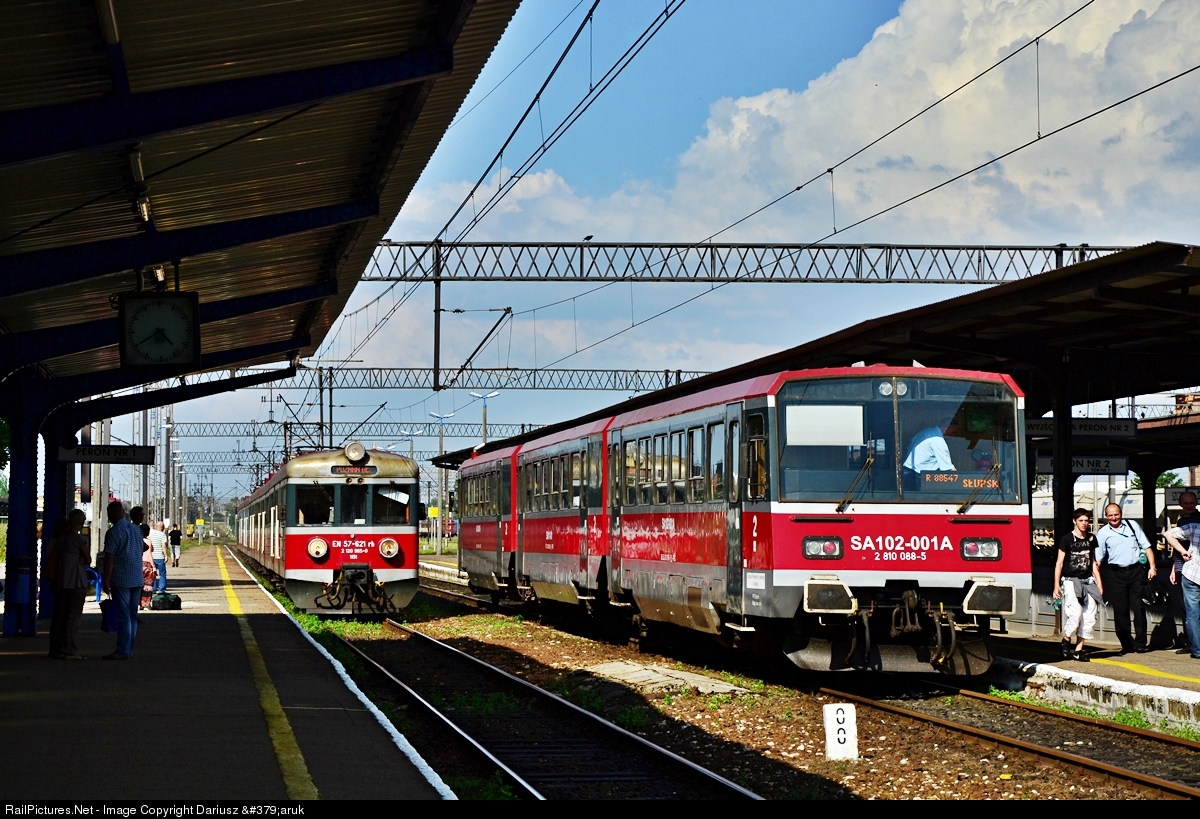 | An DMU SA102-001 during changing direction of ride on station in Szczecinek. It came as a train 88383 from Chojnice and will depart as a train 88547 to Słupsk. Nowadays all DMUs series SA101 and SA102 are out of service, some of them ware scrapped so far.