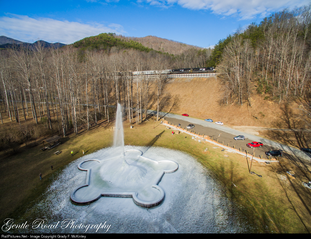 The bitter cold that settled over the Blue Ridge mountains the first week of January has frozen Andrew's Geyser as P-87 makes the climb up the loops.