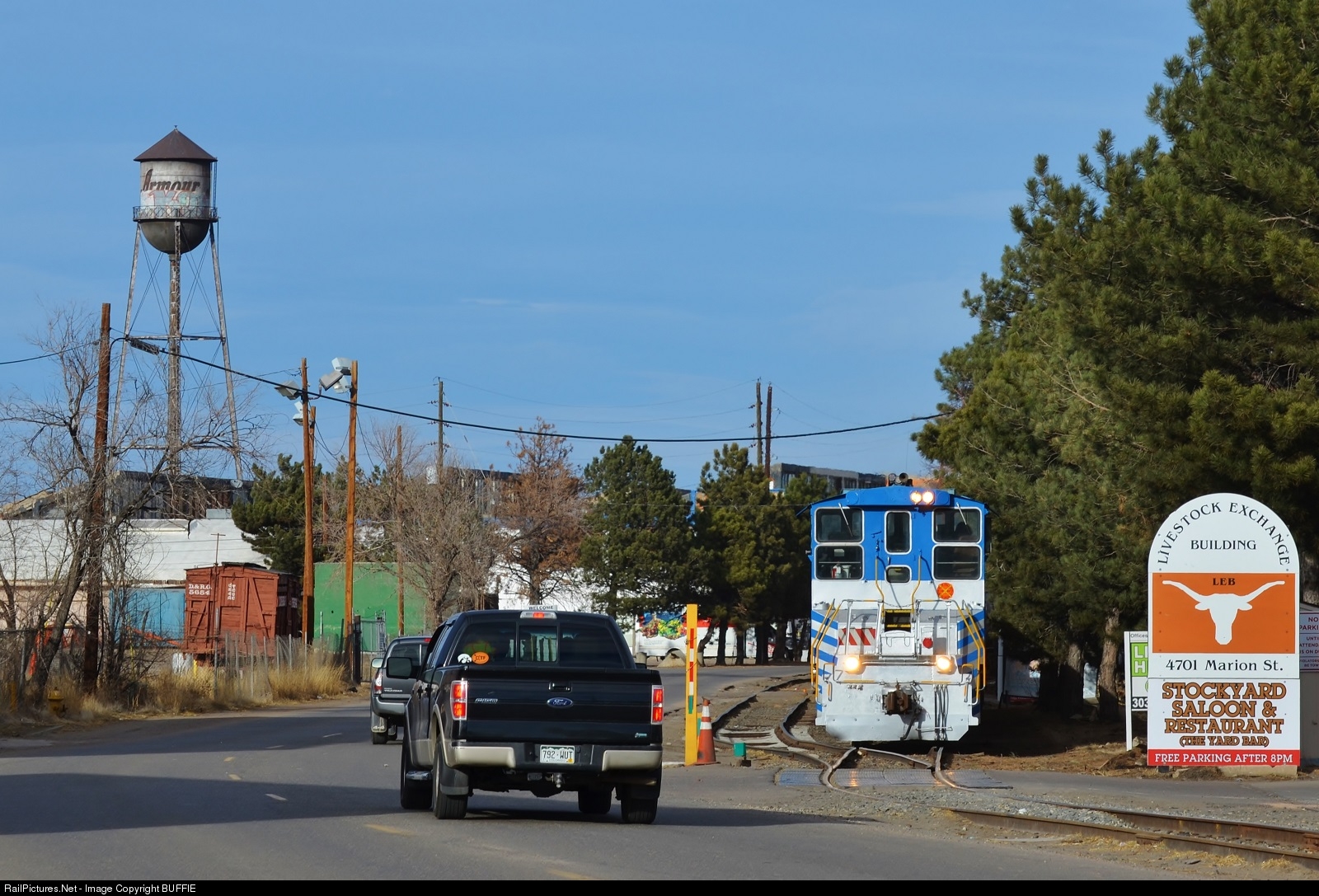 The Denver Rock Island Railroad has been working these tracks since 2005 when the DRIR acquired the Stock Yard Lead from the Union Pacific Railroad. Although still functional, the tracks in this area have been around since the early 1900's, when the development of the nearby Denver Stock Yard Company created the demand for trainloads of cattle, sheep, and pigs that were delivered via livestock cars seven days a week, 24 hours a day to be sold and traded in the active marketplace. The activity in the crowded yards was comparable to what can be found today at the New York Stock Exchange. With all that activity it was not long before packing plants and other industries sprouted in the area. One large packing plant operated by Armour & Company and built in 1917 dominated the area, until 1987 when most of the facility was demolished, leaving only one office building and the old water tower as reminders of Denver's heyday of livestock trading.