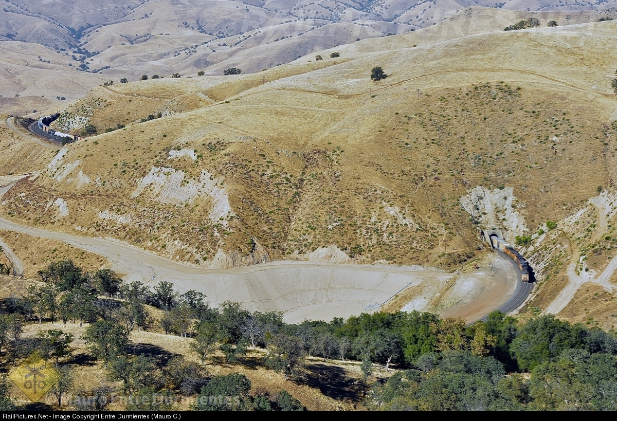 In the dry and hot places of the Tehachapi mountains, UP power lead by AC45CCTE No. 8156, cross the tunnel No. 5 on the way down to Bealville in Tehachapi Pass.