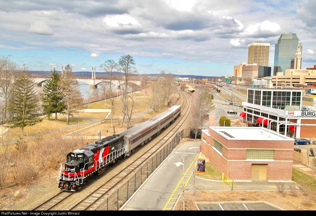 | A CT-Rail qualifying test train with recently rebuilt 6694 shoves into Springfield, MA. Crews are getting prepared for the upcoming commuter service on the Hartford Line |