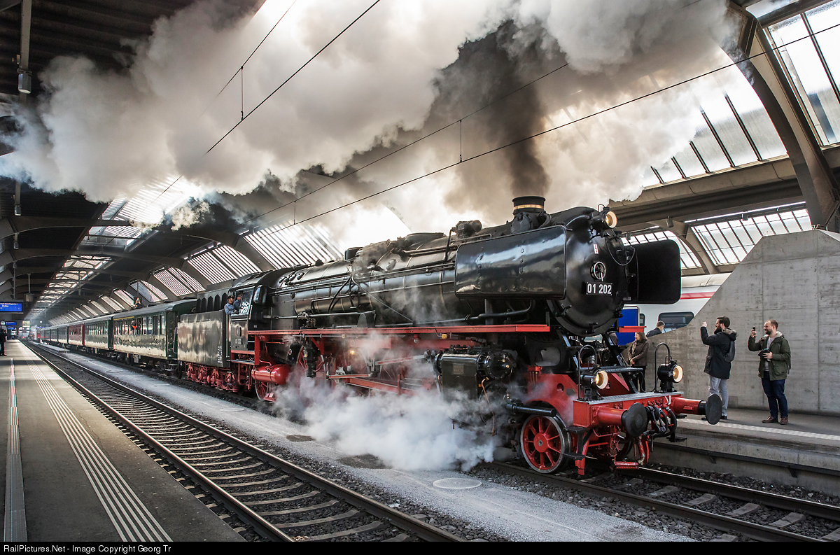For "MagicTicket", the kids programm of the SBB, a steam train circulated this day from Zürich via Brugg-Wohlen-Rotkreuz-Immensee to Luzern, for the preview of the movie "Jim Knopf und Lukas der Lokomotivführer" in the Swiss Transport Museum. 4-6-2 "Pacific" 01 # 202 of association "Pacific 01 202" at Lyss pulled the train with 7 cars of the Swiss Classic Train (SCT), by order of SBB Marketing. The train is departing from Zürich main station, with impressive sound and filling the hall with steam and smoke.
