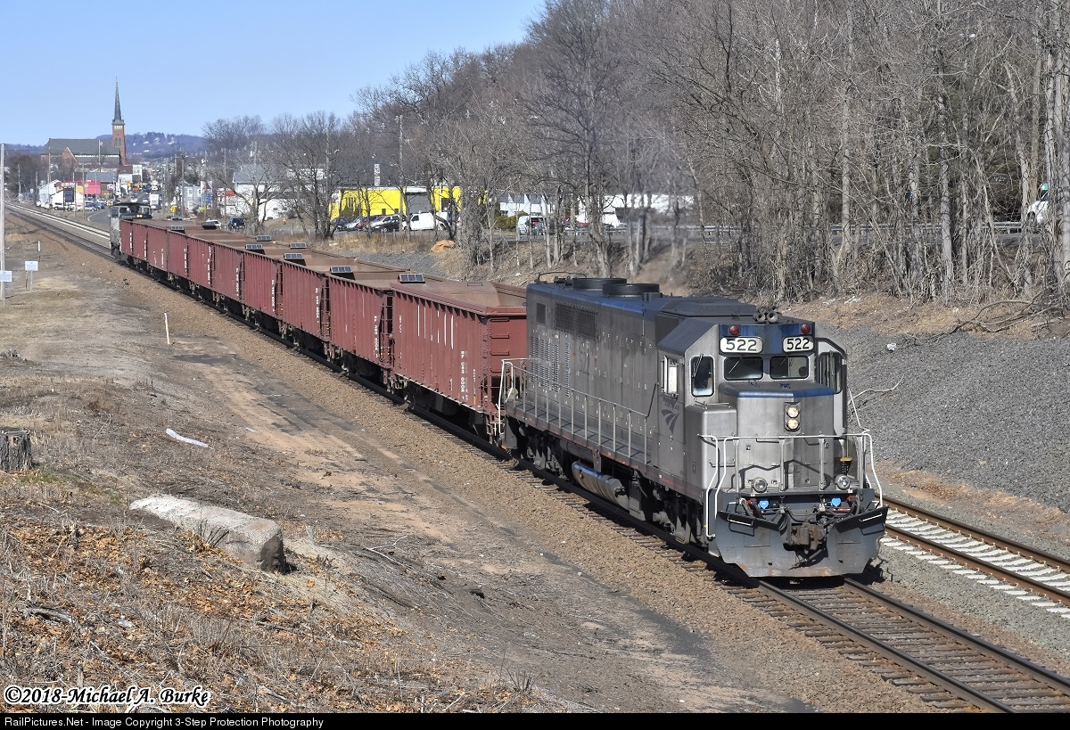 Amtrak GP38H-3 522 leads a short work extra south through Wallingford.