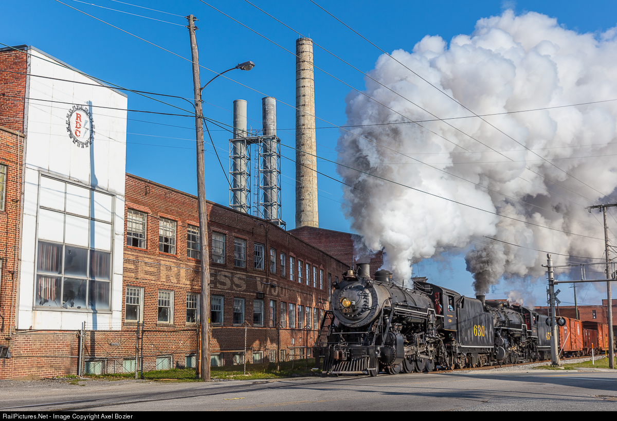 | Southern steam locomotives Consolidation #630 (built by ALCO in 1904) and Mikado #4501 (built by Baldwin in 1911) charges southbound through Rossville, GA passing the former Peerless Woolen Mills. A great Lerro Productions charter together with the Tennessee Valley Railroad Museum. |