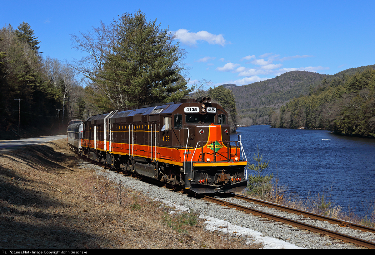 The second to last Snow Train of the season rounds the curve along the upper Hudson River at Stony Creek. This is the former D&H Adirondack Branch that ran to the titanium mine at Tahawus.