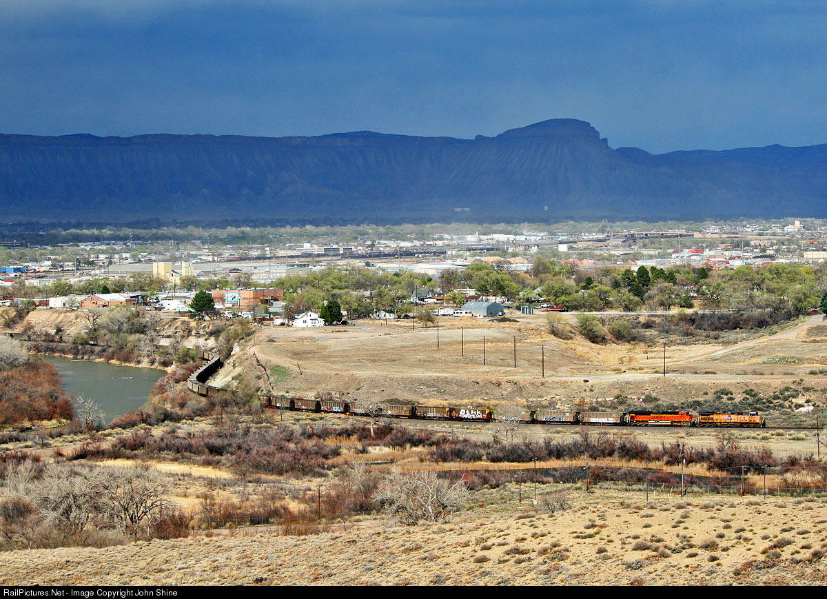 Union Pacific #5886 is just departing Grand Jct. and is heading South down the N. Fork Sub. heading to the W. Elk coal mine. Mt. Garfield is in shadows in the background as "dry" thunderstorms roll overhead.