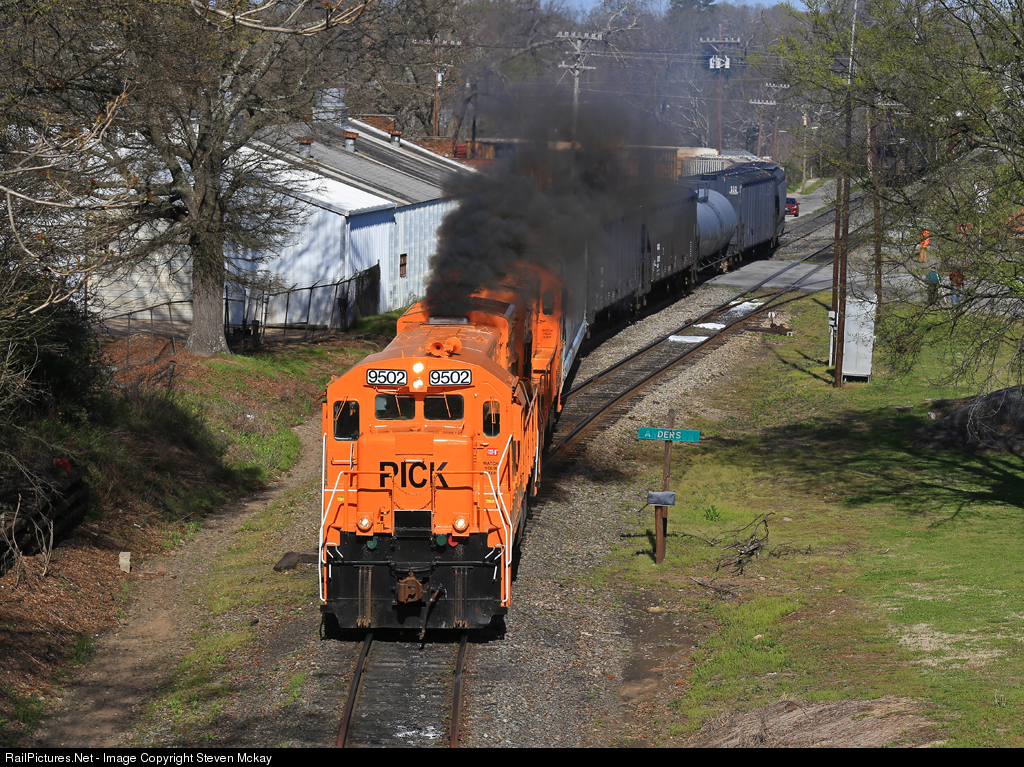 | Pickens Anderson Job pulls into its namesake city to make a set off and pick up at the NS interchange. The engineer pulls back a couple notches and puts on a nice smoke show for me. This was one of the most friendly and nicest railroads I have visited in long time. |