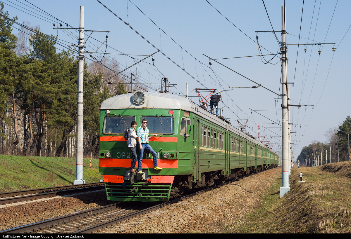 In other regions of our vast country trainsurfers practically does not occur. They are surfing ER2R 3 kV DC EMU train (max speed - 130 km/h) on this photo. ER2R EMU trains were produced by Riga Carriage Works between 1979 and 1987. In total there were produced 89 units in different numbers of cars (from 4 to 12). Now most of ER2R are taken out of service in Russia, but you can see ER2R in Ukraine.