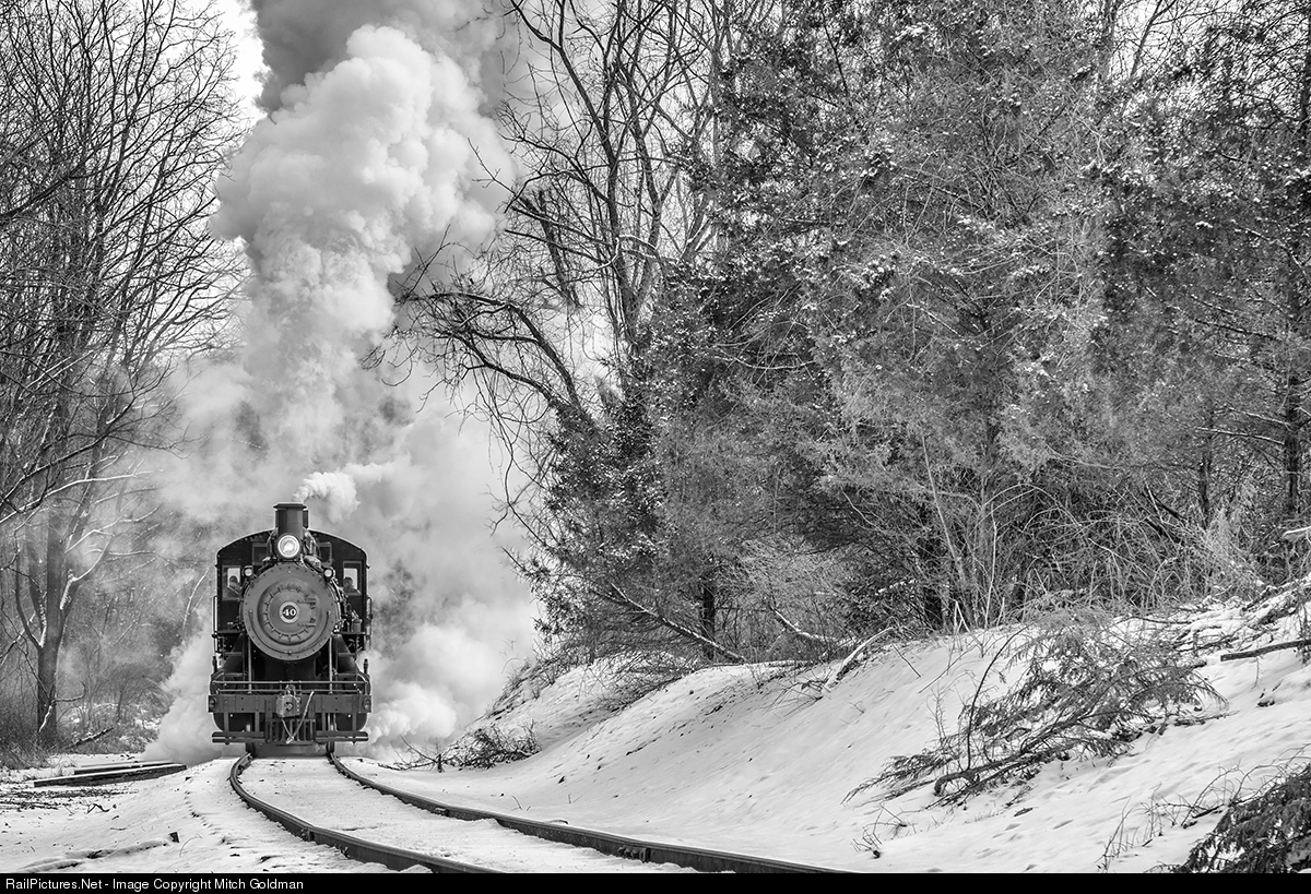 Cliffside Railroad Company hauls a short freight through the woods of North Carolina traveling along the line's 3.7 mile stretch. The power for the day's run, captured in December of 1947, is the railroad's then recently acquired 2-8-0, No. 40, former Lancaster & Chester. Or, it's No. 40 present day, New Hope & Ivyland Railroad.