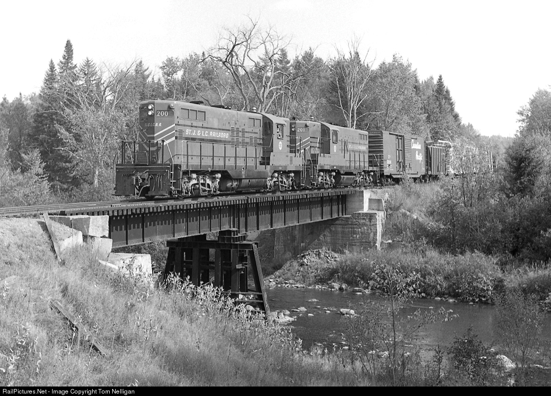In 1970, the regular power for the struggling St. Johnsbury & Lamoille County Railroad's daily St. Johnsbury-Swanton freight across northern Vermont was former New York Central GP9s 200 and 201. The pair rattled across a trestle near Danville, VT, on a fine fall afternoon. Two years later the StJ&LC would file for abandonment, which led to a series of new owners and corporate names for the line before it ultimately came to an end.