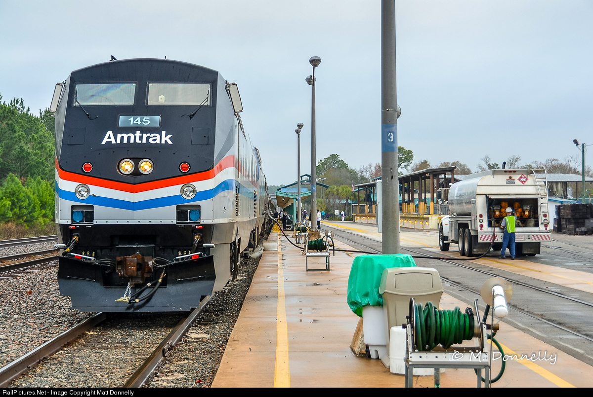 On it's second revenue run after being painted into Phase III, the 145 is in charge of the Silver Meteor and takes on fuel at Jacksonville. Only a couple chips to the paint on the plow mar the pristine paint job after having traveled from Beech Grove to Chicago, then to Washington and onto Jacksonville where this photo was taken.