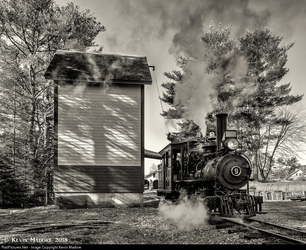 Of course, the tracks of the present-day WW&F Museum no longer go all the way to the waterfront in Wiscasset, and the location of the former yard in Wiscasset is now a field behind an elementary school. The WW&F Museum has built its base at around MP 4.8 at the location of the former Sheepscot Station. There, they are attempting to re-create the yard which used to exist in Wiscasset. It now consists of a large shop building (just visible behind the locomotive), a station and freight house, a large car barn, turntable and water tank (seen in the above photo.) In the not-too-distant future, they also plan to add a 3-stall engine house, which will become the new quarters for #9, a sister 0-4-4T #10, and a future 2-4-4T locomotive, which will be numbered 11. The museum currently has about 2.5 miles of track, which runs north from Sheepscot, to and beyond Alna Center. The museum's eventual goal is to reach Head Tide, roughly a mile north of the current end of track.