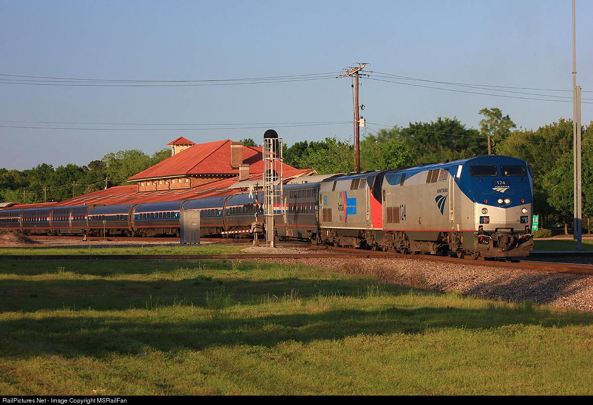 RailPictures.Net Photo: AMTK 124 Amtrak GE P42DC at Hattiesburg, Mississippi by MSRailFan