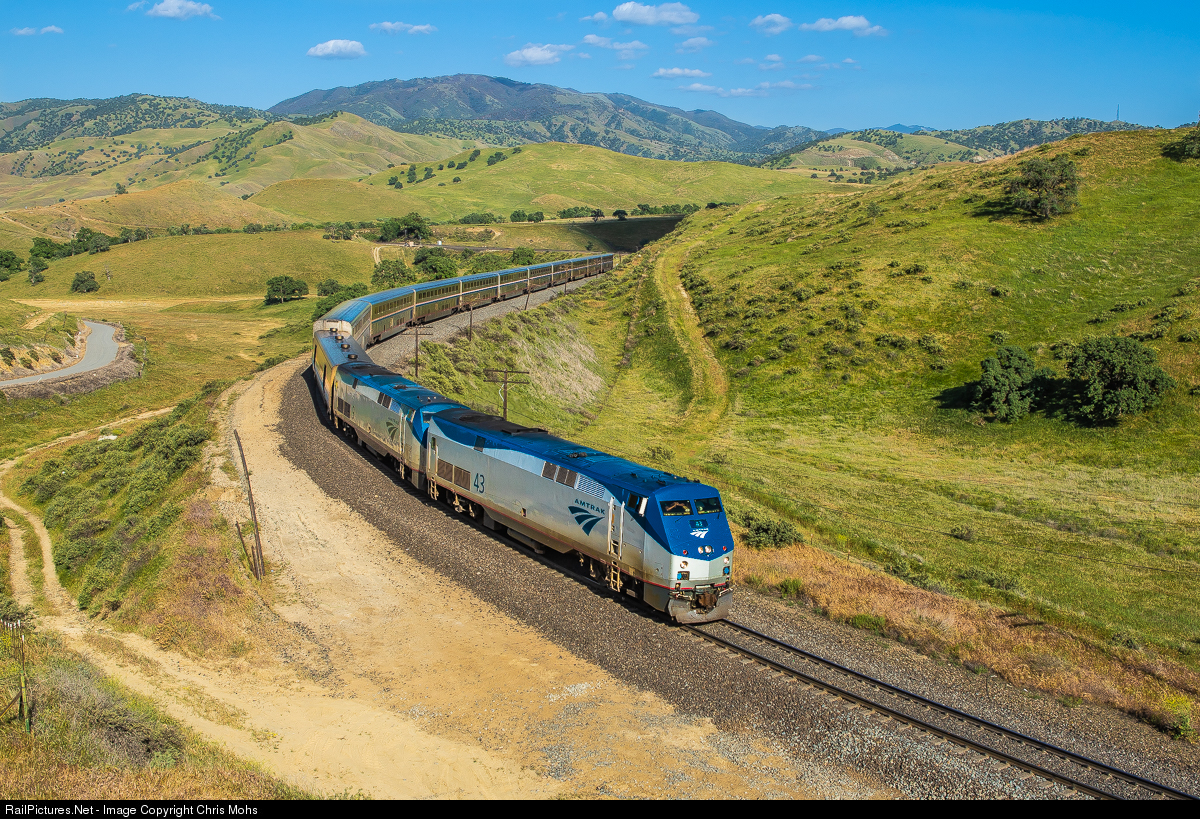 RailPictures.Net Photo: AMTK 43 Amtrak GE P42DC at Bealville, California by Chris Mohs