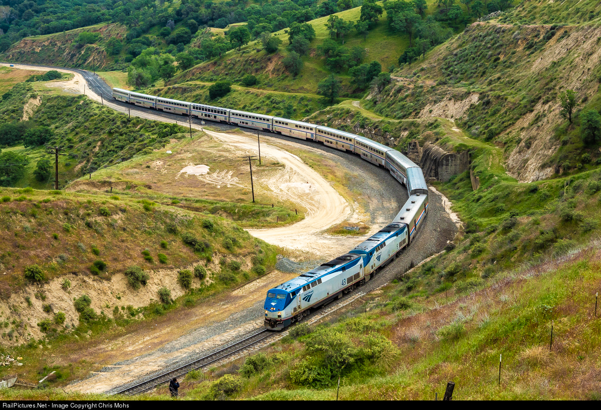 Due to Tunnel work being done in the Chatsworth area, No. 14 the northbound Coast Starlight, detours through the Tehachapi Mountains to Bakersfield, up the Fresno Sub, over to Altamont pass and rejoin the Coast Route at Oakland. No. 14 drifts down the western side of the Tehachapi Mountains between tunnels 5 and 3 and past the remnants of collapsed tunnel 4 in the Bealville area.