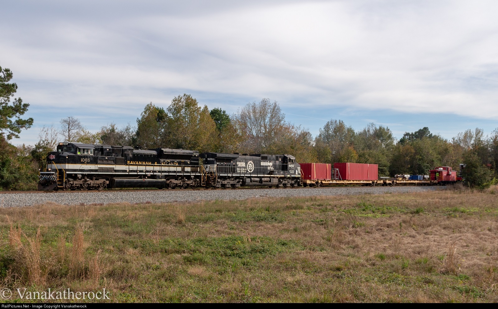 The front half of the train with the *World's Largest Railcar* has the NS Savannah & Atlanta heritage unit leading an Operation Lifesaver Dash 9. The power was specifically chosen for this trip due to the Discovery Channel chasing the movement for a TV show that was under consideration for production. So far, it has not come out. Also, it was the wash job of the 1065 for this trip that helped burn off some of the lettering on the big EMD.