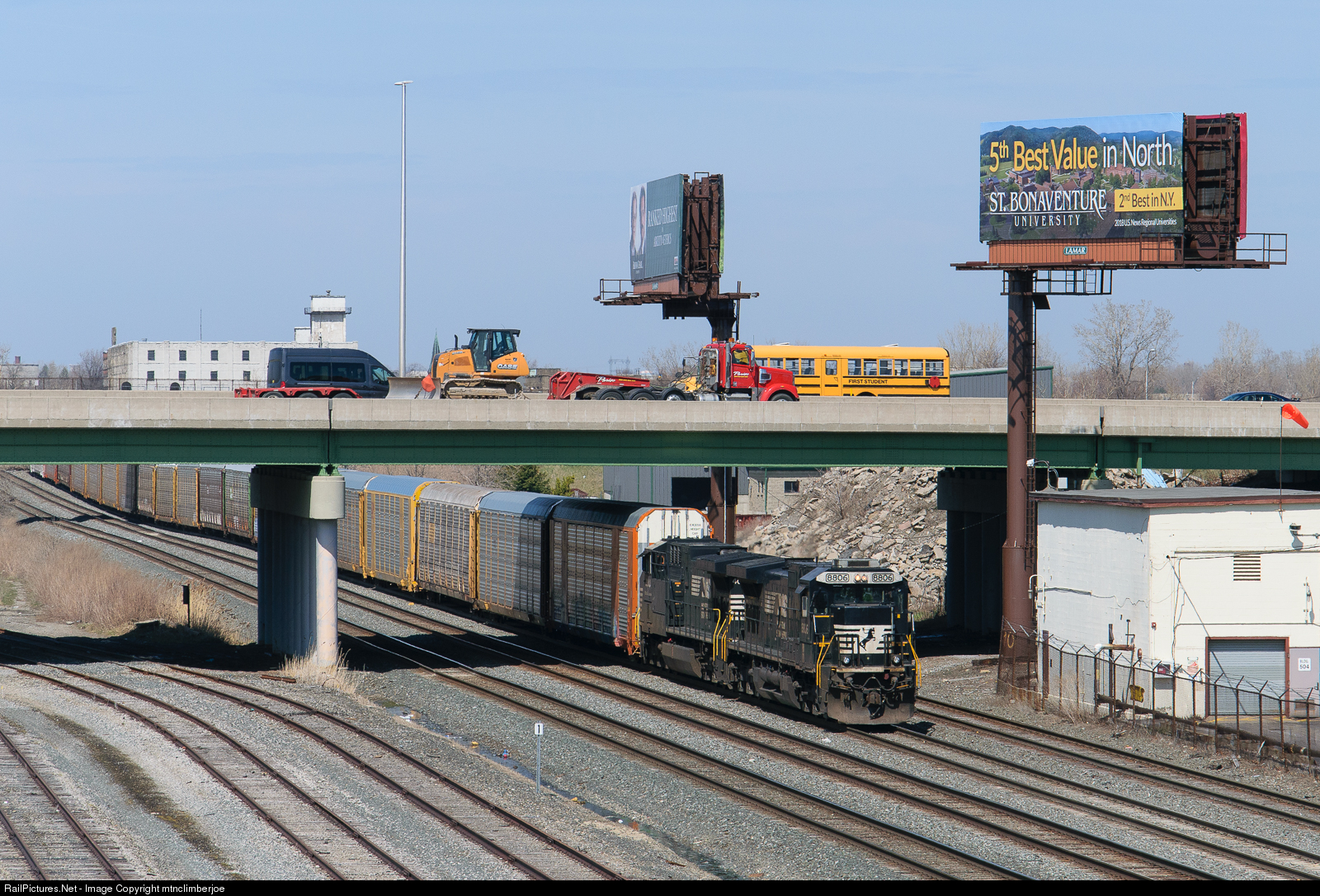 NS auto train 287 departs Buffalo and heads towards CP DRAW with a C40-9 in the lead.