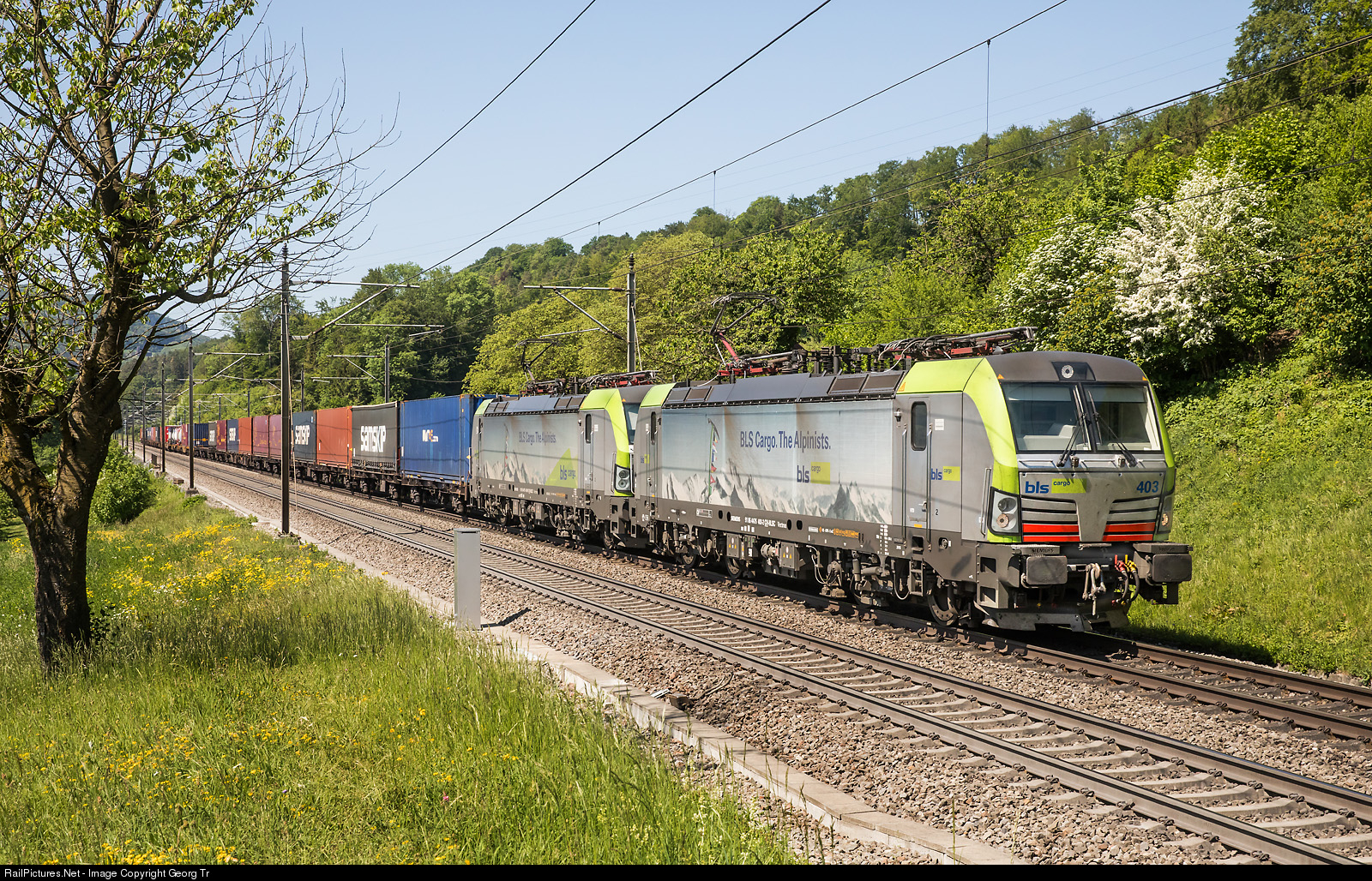 | Siemens Vectron locomotives Re 475 # 403 and # 409 are pulling the southbound intermodal train 41027 from Krefeld/Germany to Melzo Scalo/Italy on the Bözberg line towards the Gotthard Base Tunnel. |