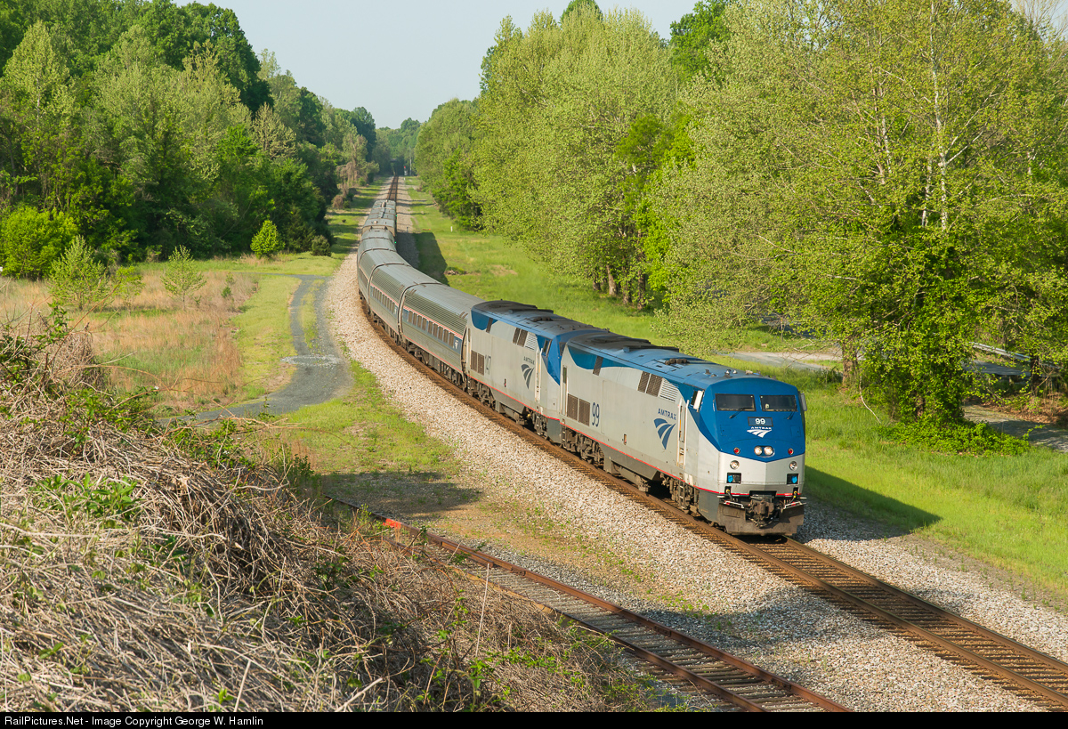 RailPictures.Net Photo: AMTK 99 Amtrak GE P42DC at Monroe, Virginia by George W. Hamlin