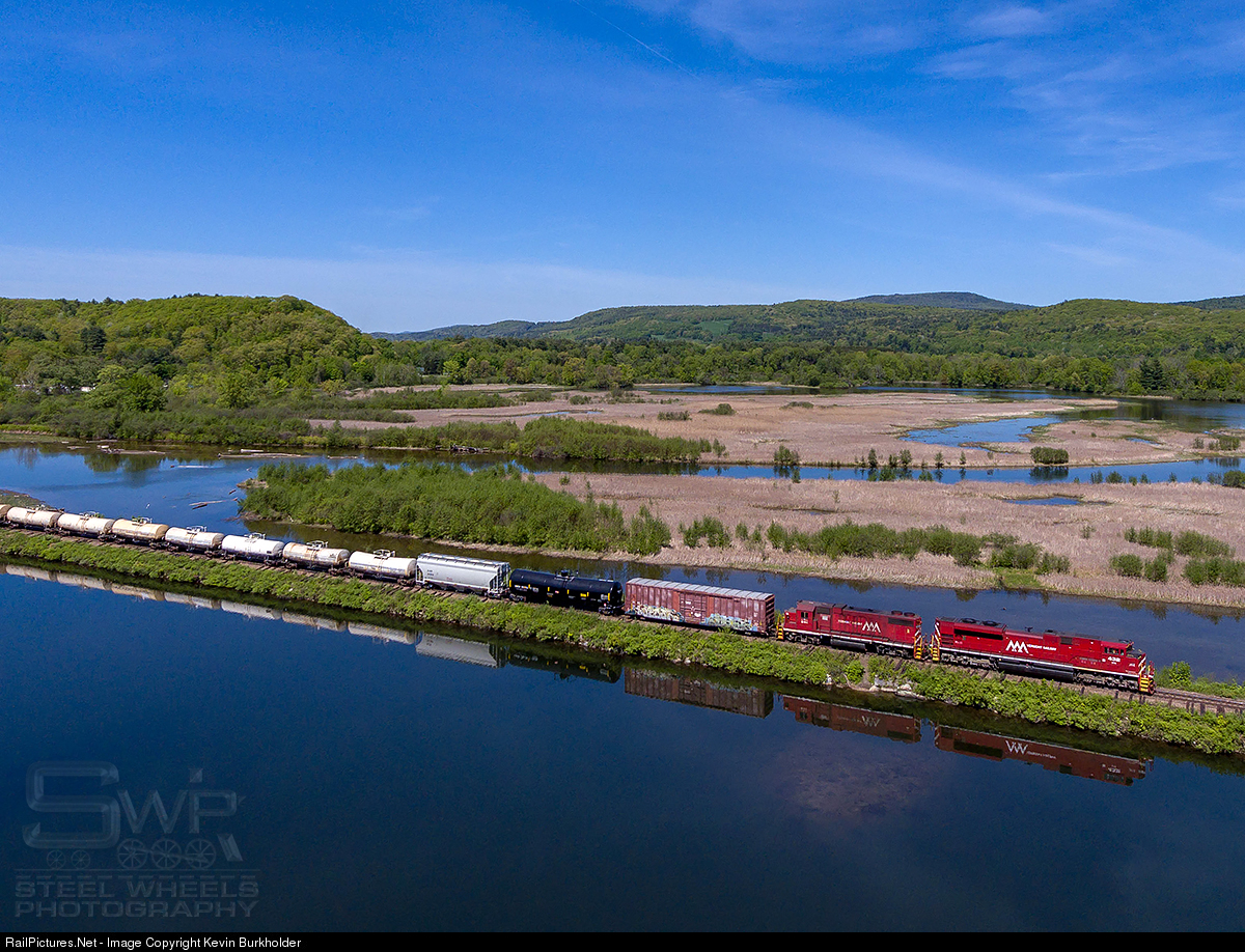 | In one of the more interesting pairings of motive power on the Vermont Rail System, Vermont Railway's oldest and newest purchased road locomotives are teamed to haul freight over the Green Mountain Railroad. Built in December 1972, Vermont Railway GP38-2 201 was the company's first newly-purchased road unit, while the 432 was built in December of 2006 and acquired by VTR in 2015 from First Union Leasing and was originally constructed for the Florida East Coast. |