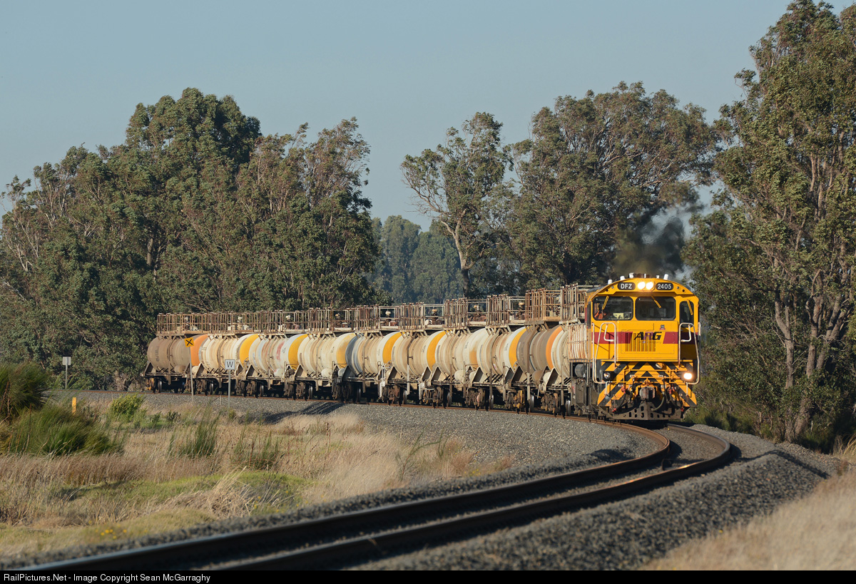 | Having returned to Picton from a stint down in Albany working woodchip services, DFZ2405 works 6902 loaded caustic train through Brunswick North. The train had departed Bunbury port late the previous day but stabled at Picton yard overnight before departing for Calcine. |