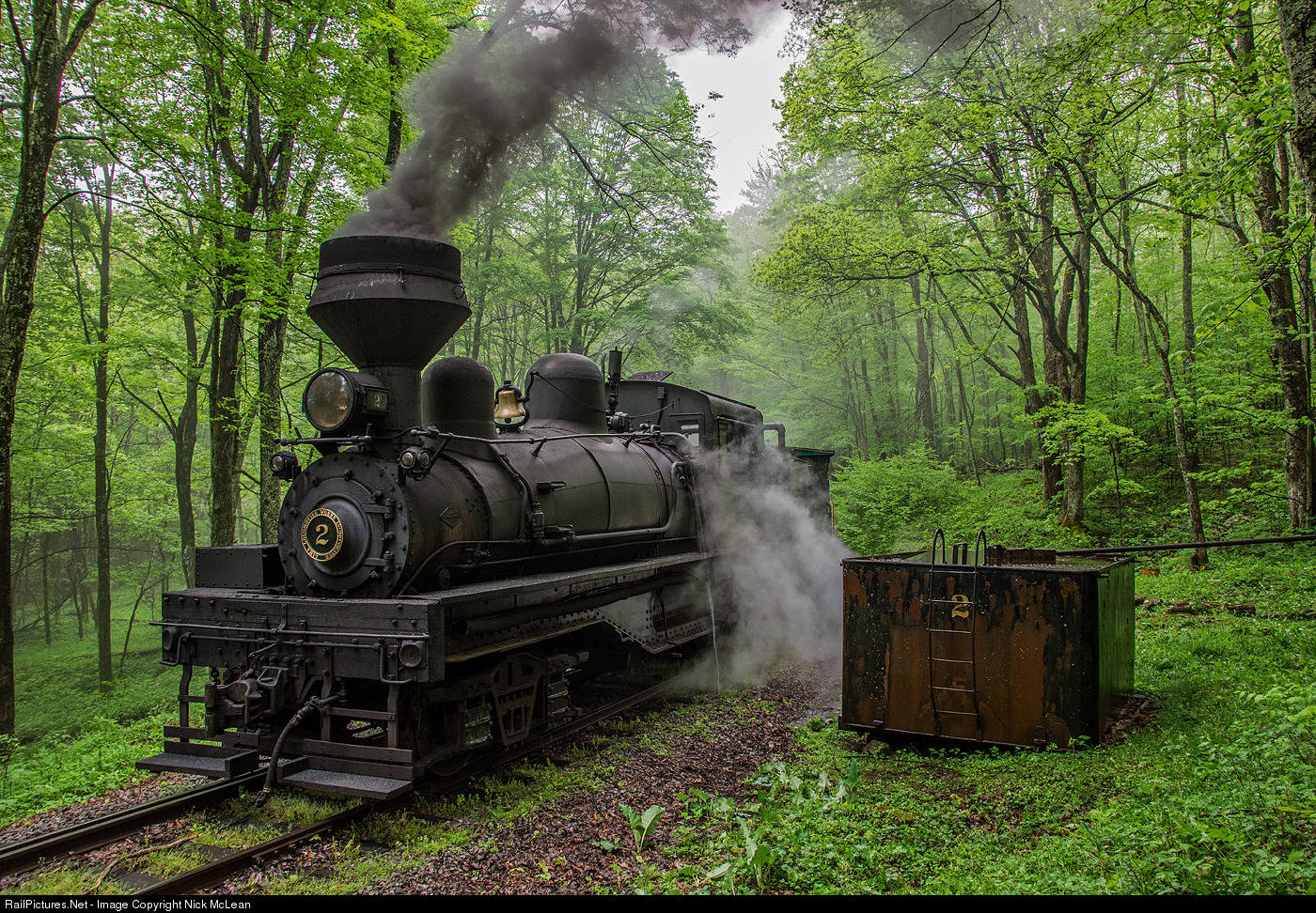 "We meet again old friend..." For the many years I've been making the pilgrimage to Cass, this is a shot I've always wanted. Shay 2 pauses beside its old water tank, which has been here for decades. While shay 11 with the freight train was the star of the day, Shay 2 handled the passenger train. After the photo line patrons were almost finished boarding, a clean shot opened up to grab shay 2 resting in the woods.