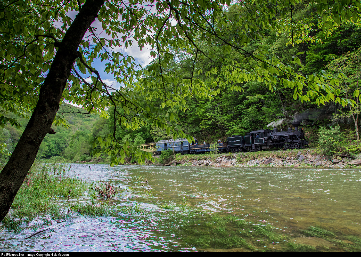 With just a handful of passengers, Cass's displaced Heisler takes a leisurely jaunt down the Greenbrier on the old C&O.