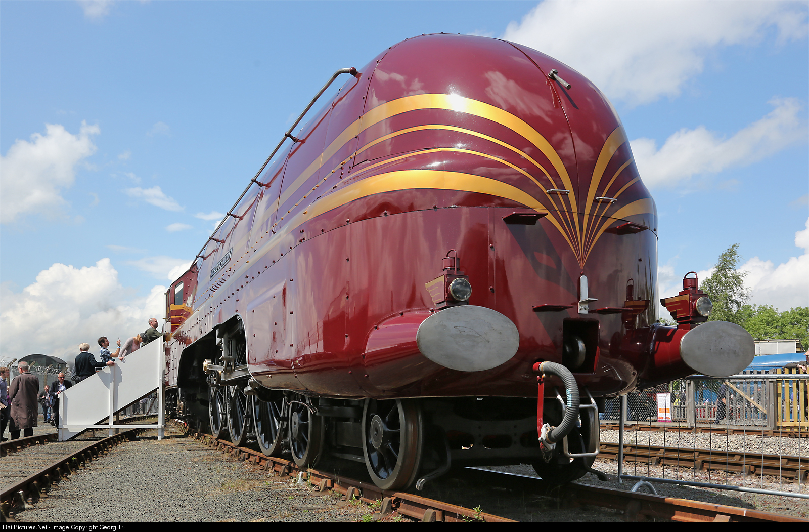 Streamlined 4-6-2 # 6229 "Duchess of Hamilton" of the famous "Coronation class" of the London Midland and Scottish Railway (LMS), built in 1938 at Crewe. Exhibited in the National Railway Museum at York.