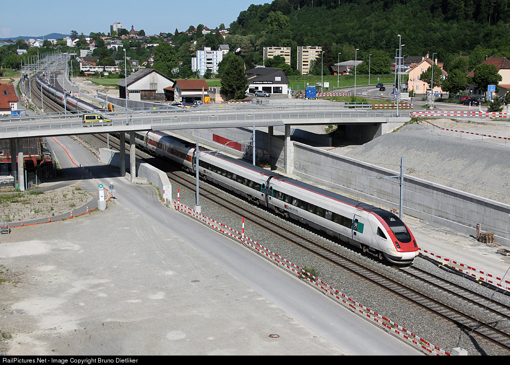 ICN (InterCityNeigezug) passes the constuction area near the new 'Eppenberg-Tunnel' between Aarau and Olten
