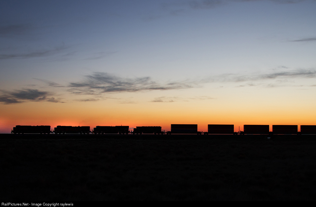 In the summer on the Seligman Sub, the rails between Canyon Diablo and Winslow offer a tremendous amount of silhouette potential. In this scene, an nice EMD stands out amongst what seems like an endless amount of GEs on the transcon.