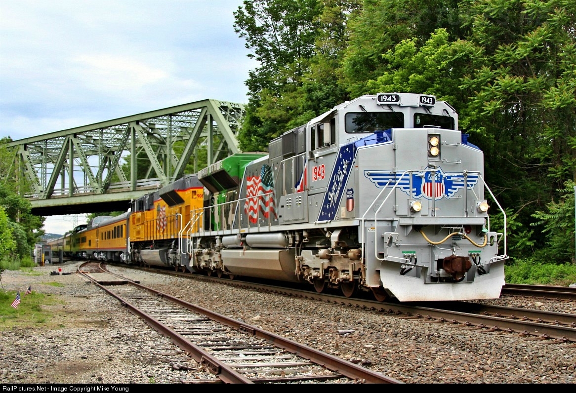 | A very special run of the Union Pacific OCS on the east side of the Mississippi River. Through out the past week, UP's OCS has come east from Chicago over the Pittsburgh Line to Harrisburg then to Croxton where on this day, The train ran up the NS Southern Tier to Campbell Hall with the Harriman Family and a bunch of UP Big wigs with the UP 1943 Honoring the Vets unit leading the way for a dinner train. truly a once in a lifetime event. |
