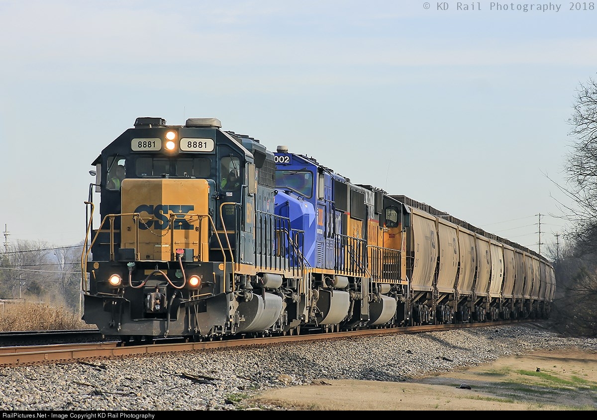 Out of all the interesting motor consist that could come out of the year 2013, CSX G319-11 is hustling north up the CSX Western & Atlantic Sub (WA) (MP WA-132.5) with a motor consist that would probably never be repeated in this lifetime. The head end motors consist of a CSX SD40-2, UP 2002 Olympic Torch Relay Commemorative Locomotives, and a UP SD60M triclops, leading a empty grain train north for Wauhatchie. Well... At least it's one of the best trail-fail I've ever seen.