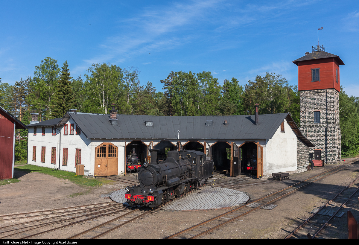 Mallet steam locomotive 0-6-0+0-6-0 #12, Sweden's biggest narrow gauge steam locomotive, is seen on the turntable in Jädraås. This locomotive was built by ATLAS in Stockholm in 1910 and was operational on the Dala-Ockelbo-Norrsundets Railway, DONJ, until 1964. The Swedish national railway museum bought this locomotive in 1967 and it has been operational again on the Jädraås – Tallås Järnväg (JTJ) museum railroad since 1983.