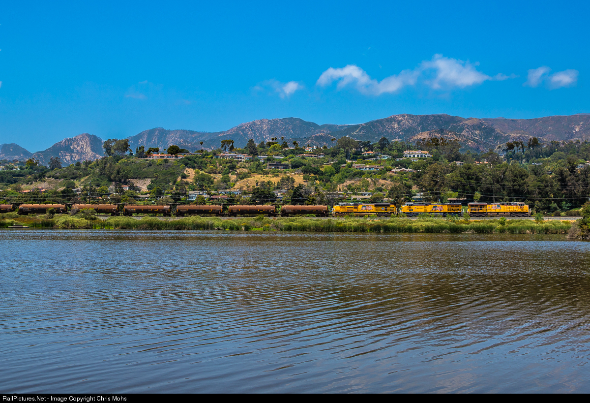 | The cans are finally moving through Santa Barbara after numerous delays. First PTC problems halted them west of Santa Barbara. After talking to the PTC desk and Dispatcher they received permission to proceed. On the move again and on track 2 to meet No. 14, the northbound Coast Starlight, they went into emergency for a trespasser on the track. They told the dispatcher they were going to walk the train. UP maintenance workers escorted the trespasser off the property. No. 14 went by and they waited to follow southbound Surfliner 782. No sooner than 782 passes than here is the trespasser standing in the middle of track 2 again. This time the police are called and the person taken away. Finally UP 5495 can resume pulling southbound. Just another day on the railroad. |