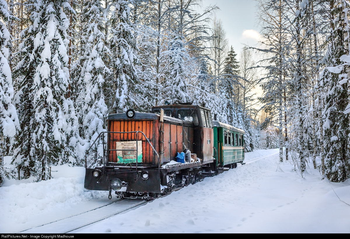 The TU6A-3716 narrow gauge diesel loco is hauling a local train from Seza to Lipakovo through a winter forest. It is the only way to get to Seza and Luzhma, the villages located deep in the taiga. Lipakovskaya narrow-gauge railway.