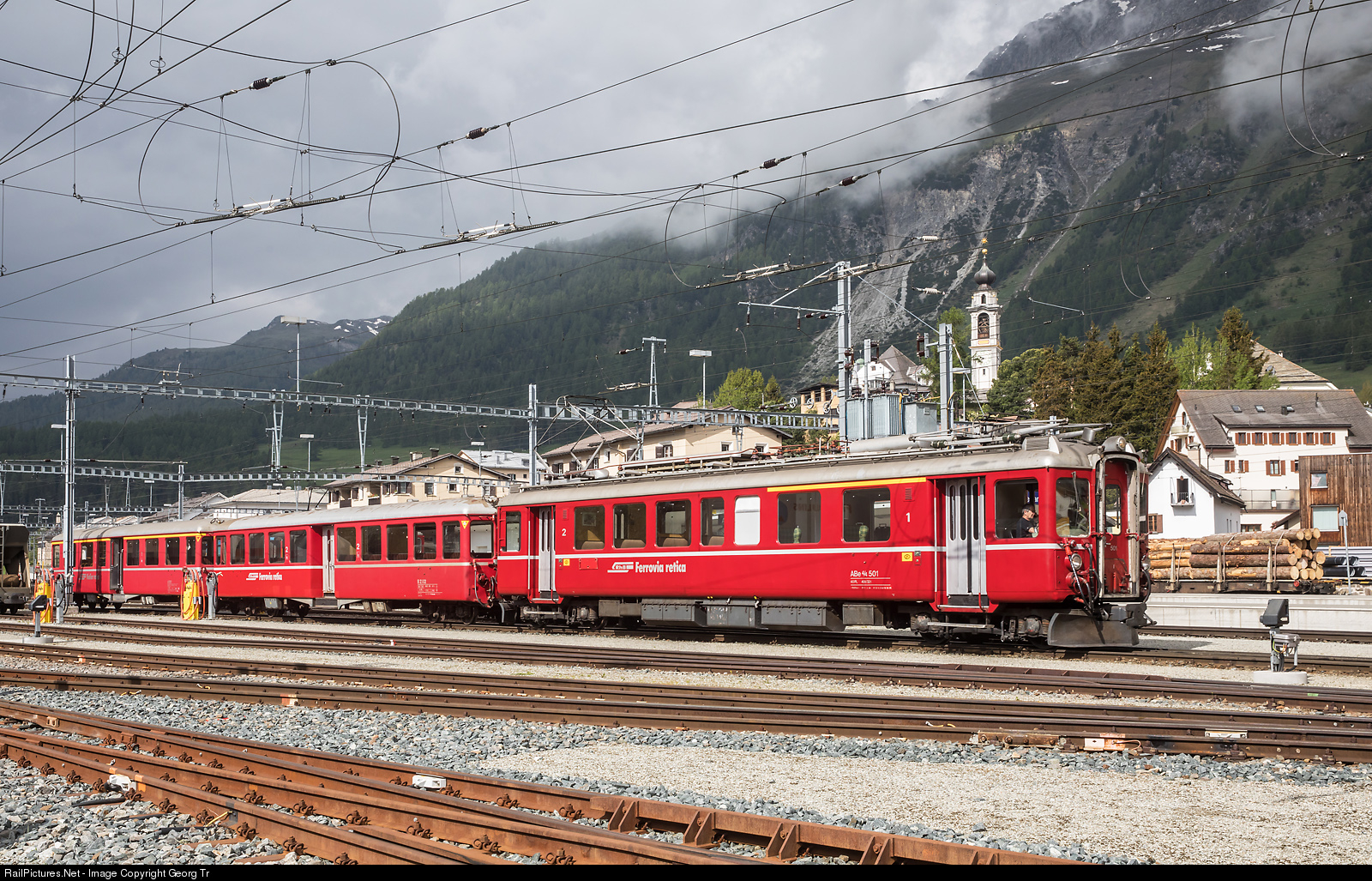 RailPictures.Net Photo: 501 RhB - Rhätische Bahn ABe 4/4 at Samedan, Switzerland by Georg Trüb