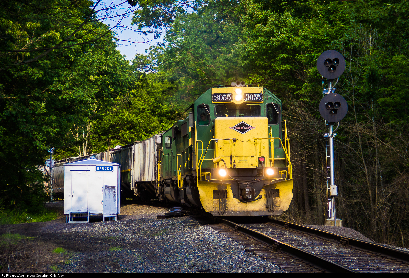 | The West Hazleton Fast Freight drops downgrade at Haucks, where the Hazleton Line (former RDG Catawissa Branch) joins the Main Line to Reading. |